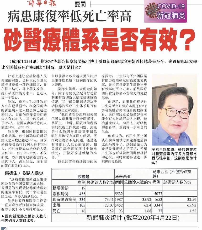 24/04/20 拿督吴标生:砂医疗体系是否有效