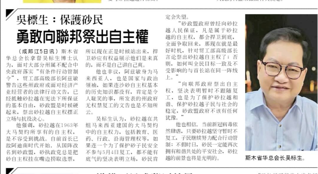 06/05/20 拿督吴标生促砂硬起来表明立场
