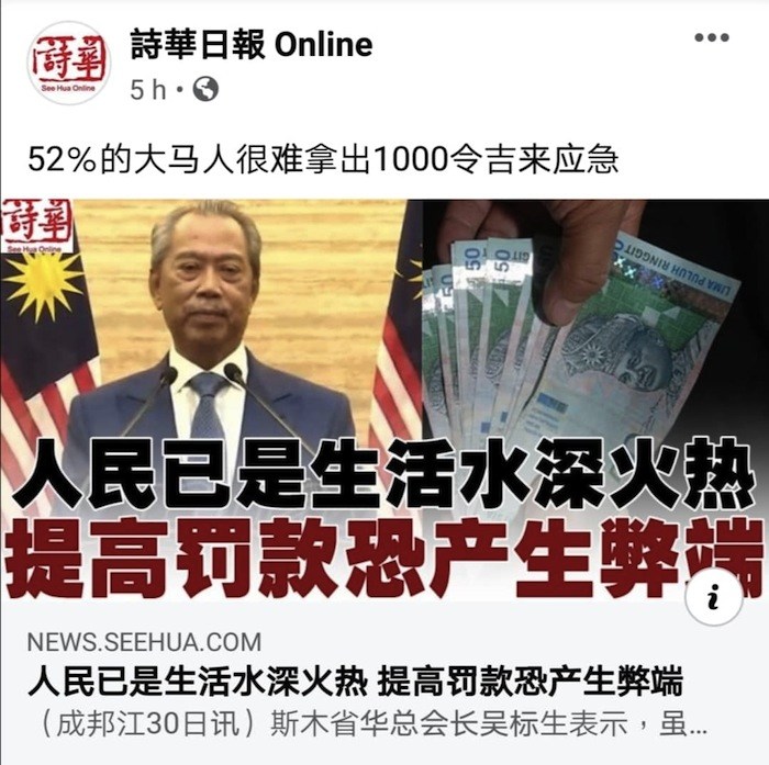 “根据2019-2023年财务知识全国策略报告指出,52%的大马人很难拿出1千令吉来应急; 在10名大马在职人士中,有3人需要借钱来购买必需品,可见1千令吉对升斗小民来说是他们的活命钱。如果把罚款再提高2至3倍,我深信会有很多贫民百姓无法再承担更高的罚款金额。”