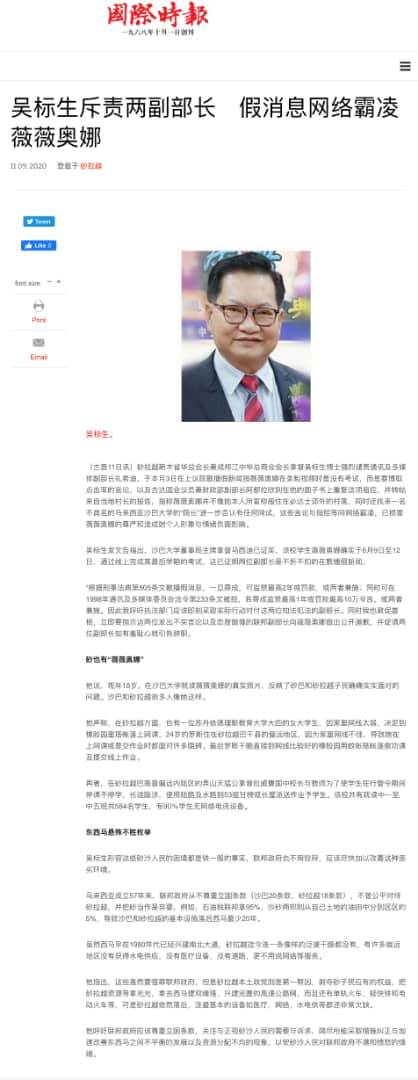 10/09/20 拿督吴标生博士:网络霸凌爬树学生