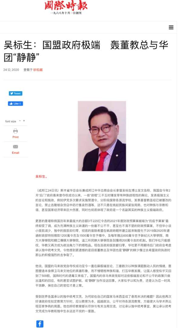 23/12/20 拿督吴标生:承认统考痴心妄想