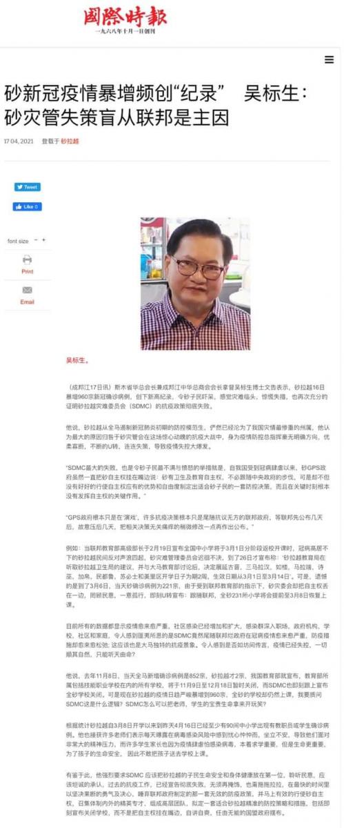 17/04/21 拿督吴标生:灾委会防疫政策失败