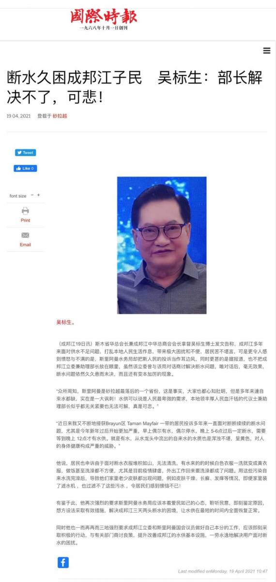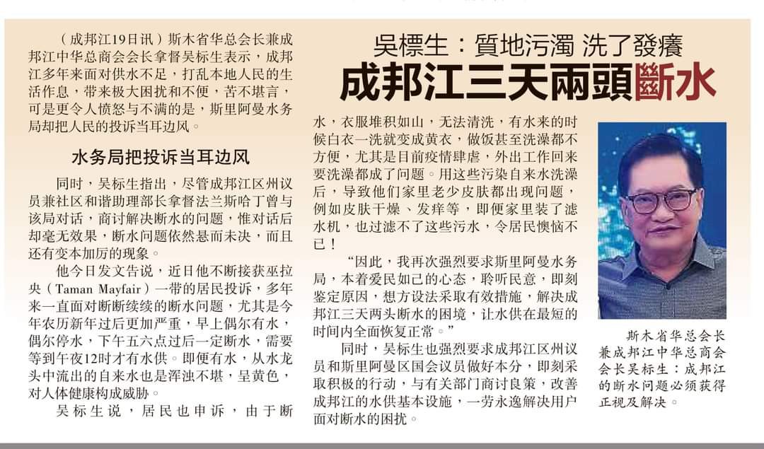 19/04/21 拿督吴标生:成邦江3天2头断水