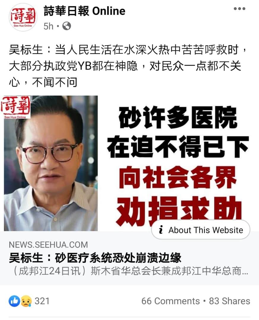 令人感到更遗憾与心寒的是砂拉越共有82位立委其中68位是GPS执政党立委,在新冠疫情肆虐一年多来,当人民生活在水深火热中苦苦呼救时,大部分执政党YBs都在神隐,对民众一点都不关心,不闻不问,没有履行一个代议士应尽的责任。