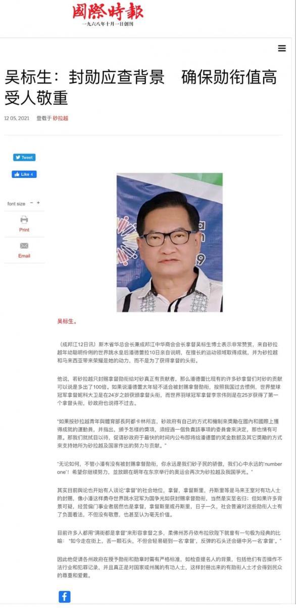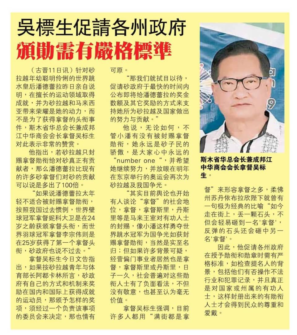 11/05/21 拿督吴标生:颁勋需有严格标准