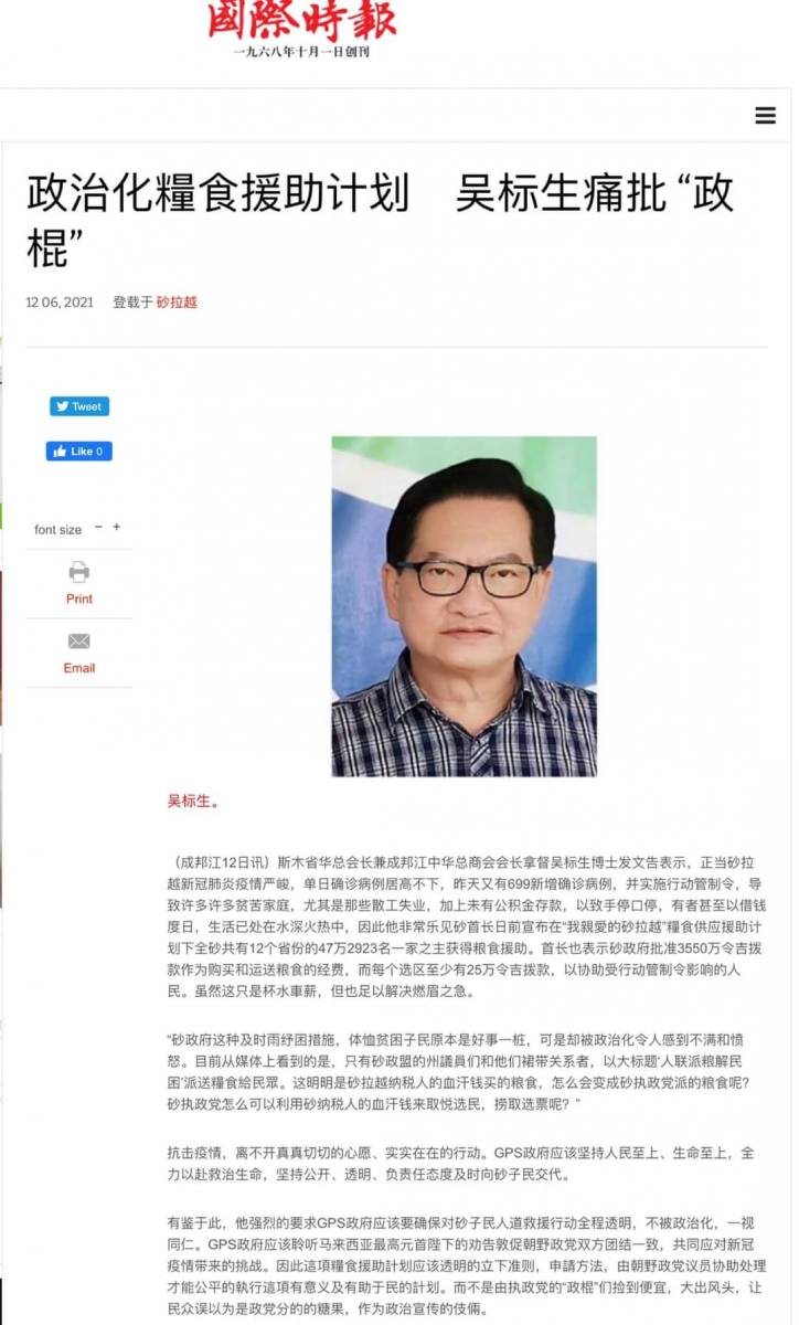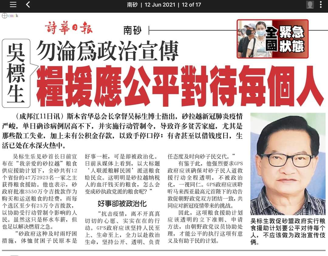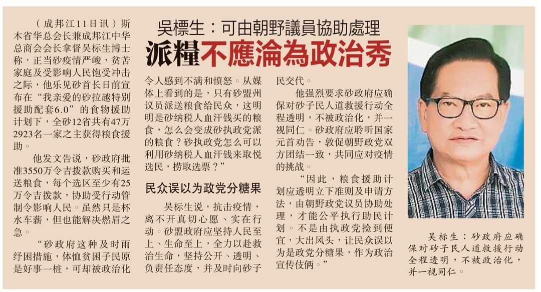 11/06/21 拿督吴标生:派粮不应沦为政治秀