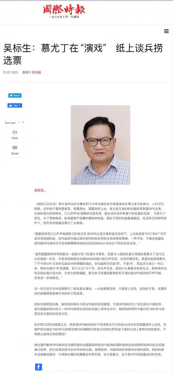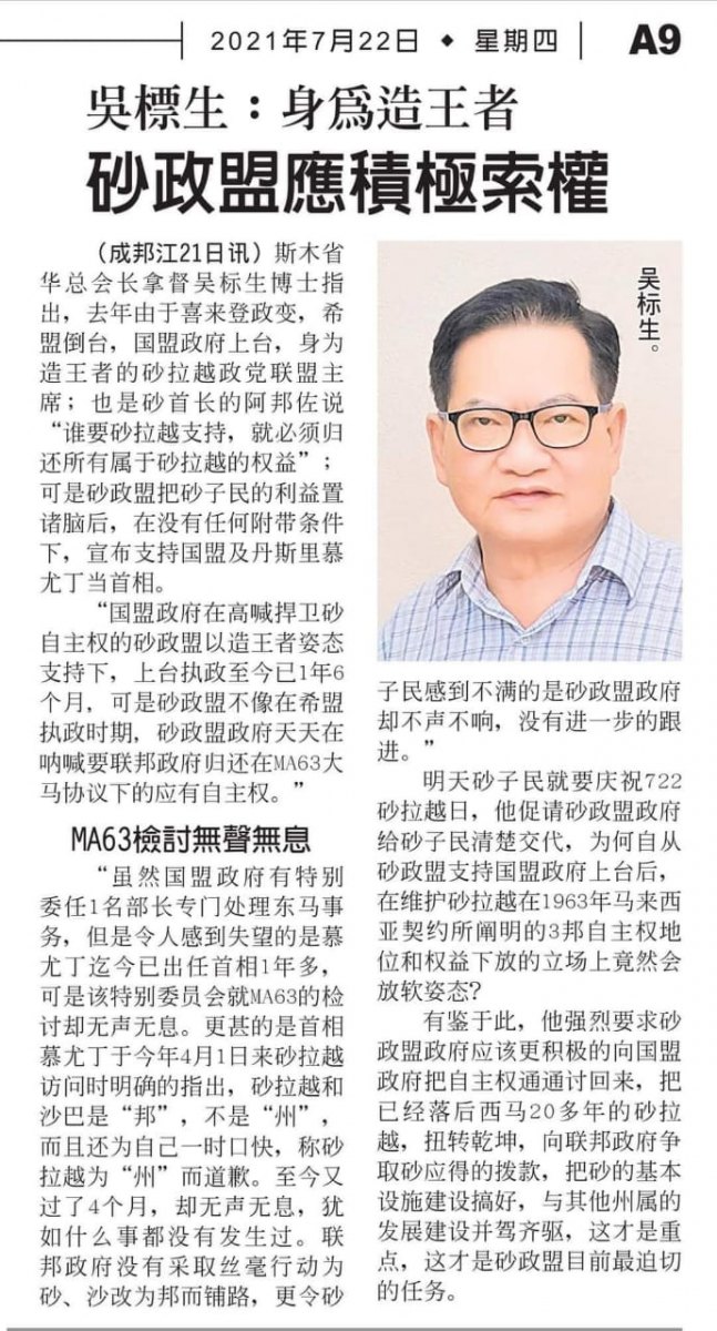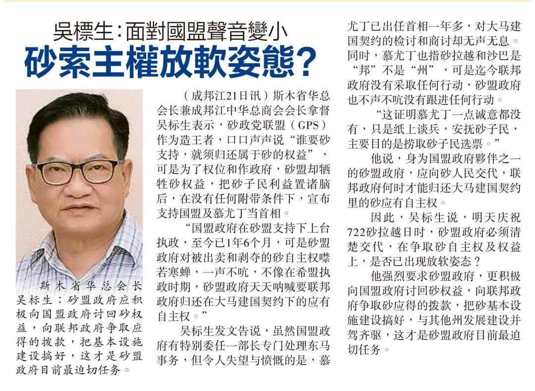 21/07/21 拿督吴标生:砂政盟应积极索权