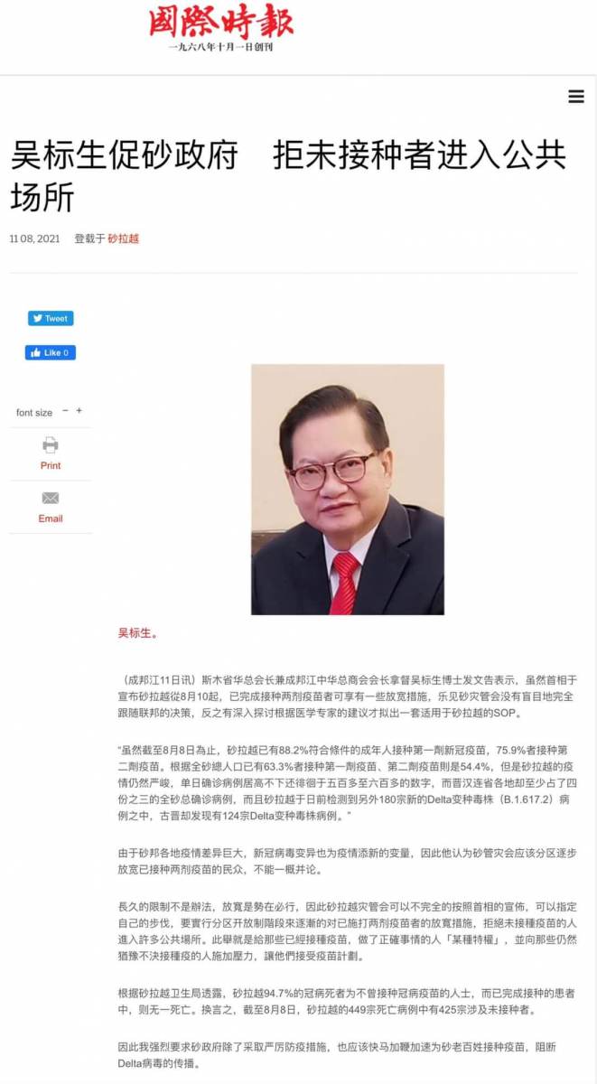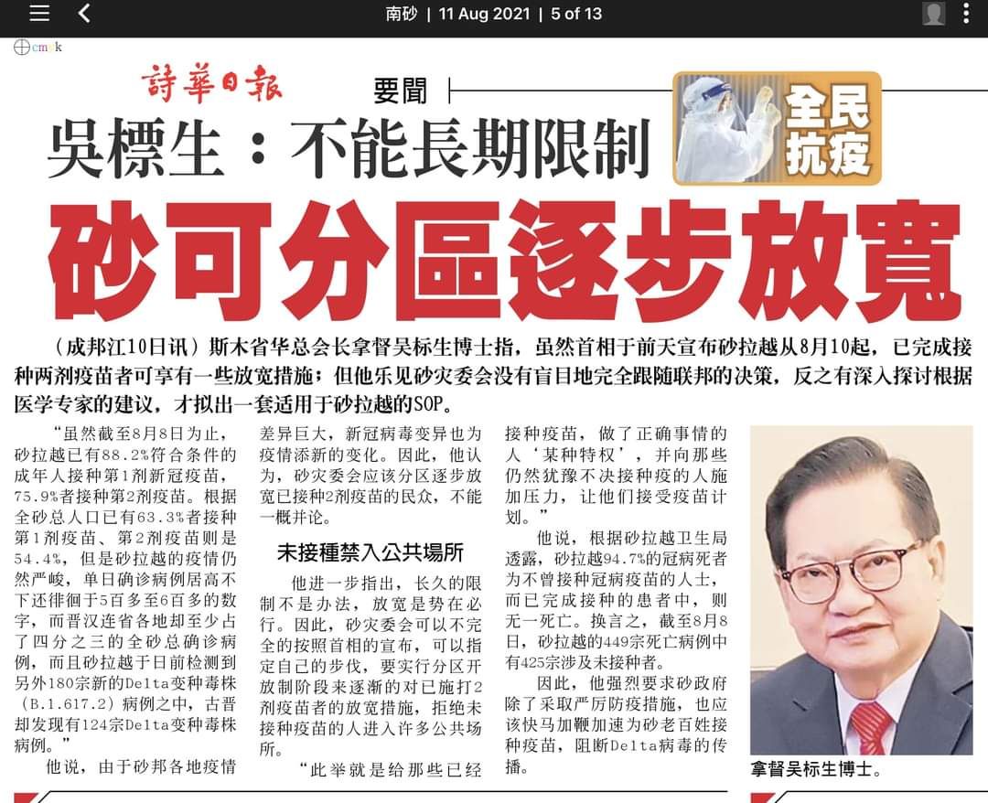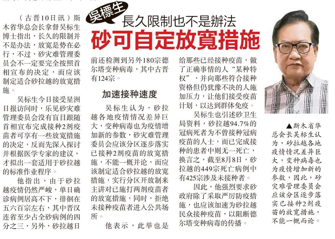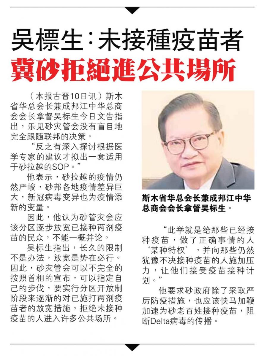 10/08/21 拿督吴标生促砂政府拒未接种者进入公共场所