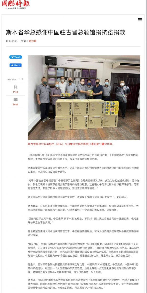 他重申,面对猝不及防的新冠肺炎疫情突袭全球之际,中国政府以“中国速度,中国规模,中国效率”展开的抗疫行动,展现出一个大国应有的负责任态度,也是全球唯一成功遏制住多地先后出现的疫情反弹,特别是近期又使Delta 变种毒株归零,成为世界典范,叫人折服。