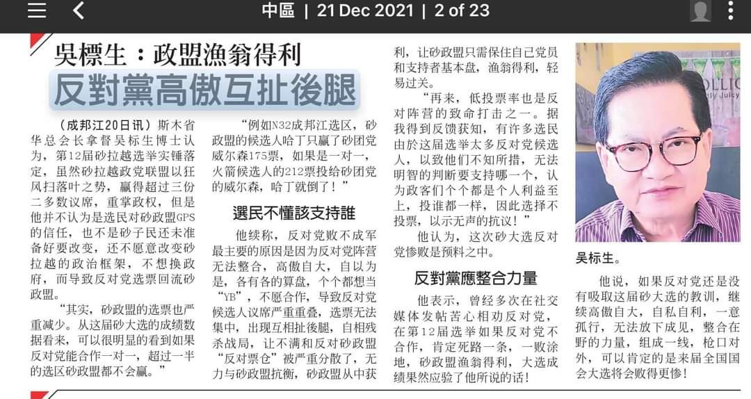 20/12/21 拿督吴标生:反对党高傲互扯后腿