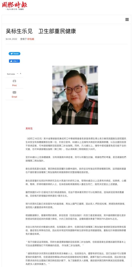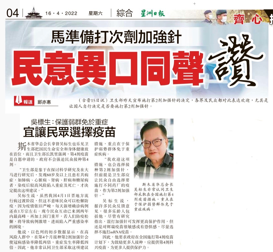 15/04/22 拿督吴标生:打第4剂应准选疫苗