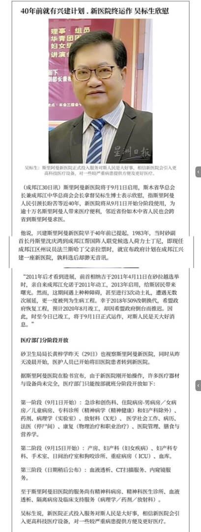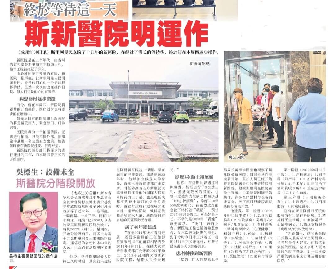 30/08/22 拿督吴标生:斯新医院终于运作了!
