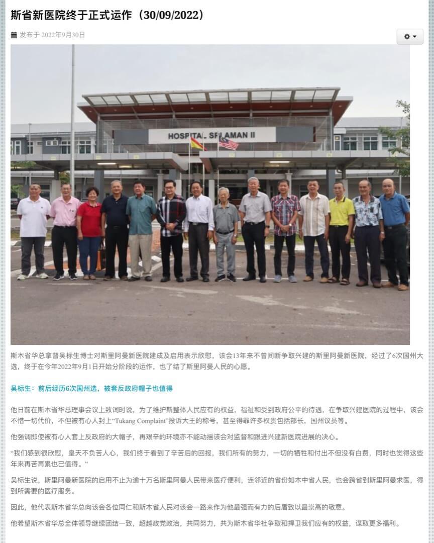 24/09/22 拿督吴标生博士:斯新医院终于启用了