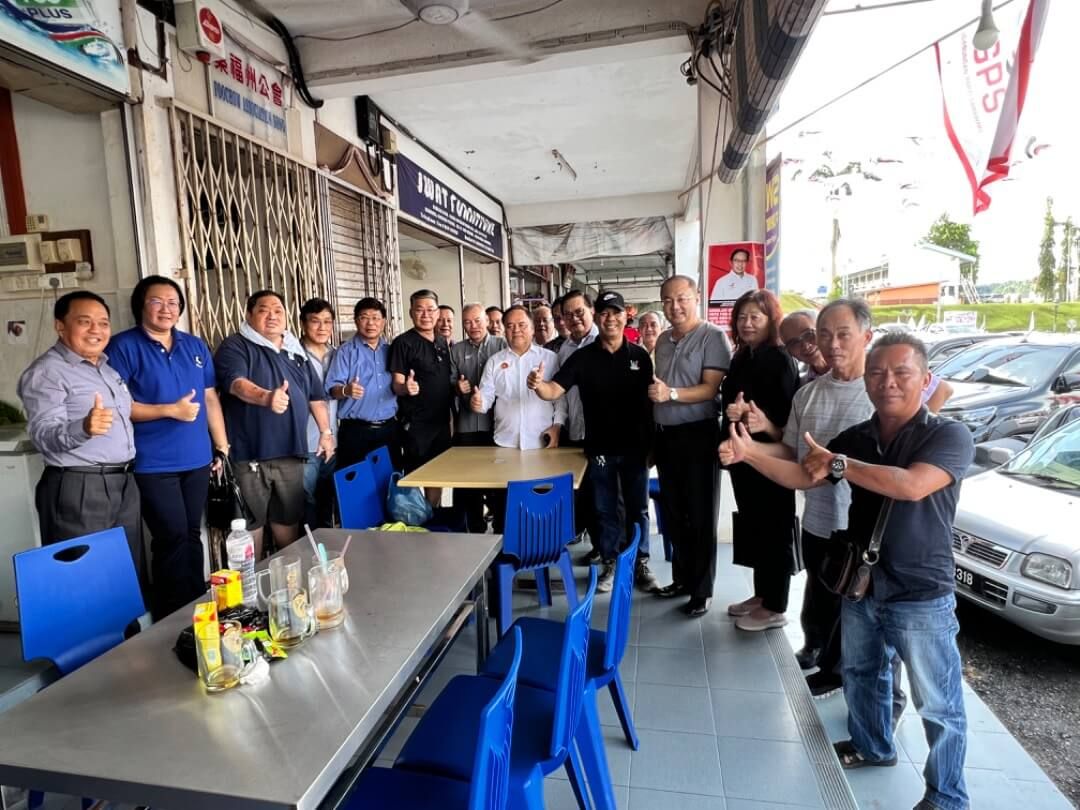 一行人昨日中午抵达桑县市镇, 在当地华人社区领袖甲必丹方孝开经营的餐馆享用道地风味午餐,并由加帛省华总代会长甲必丹叶忍福宴请接待。
