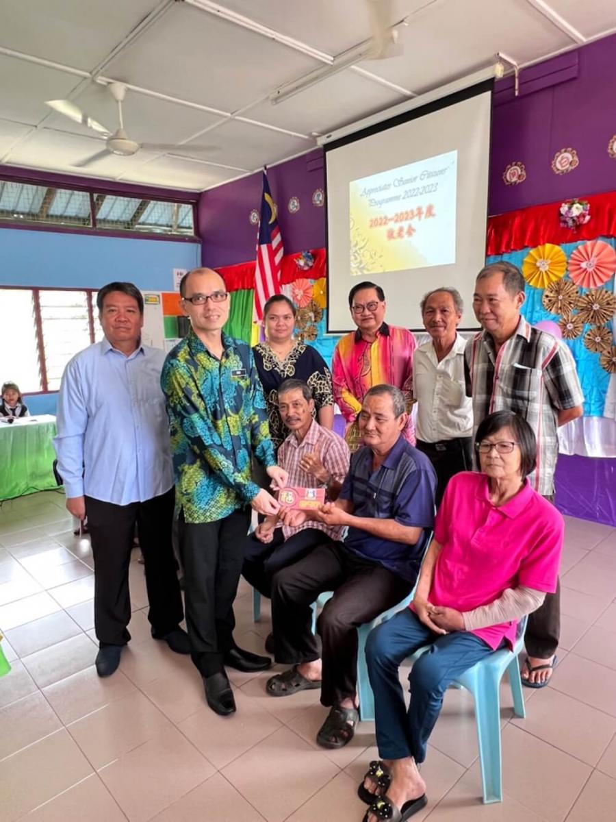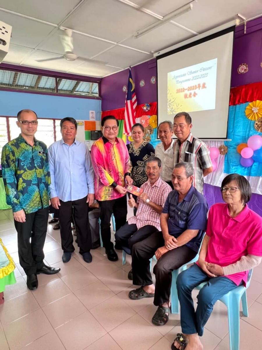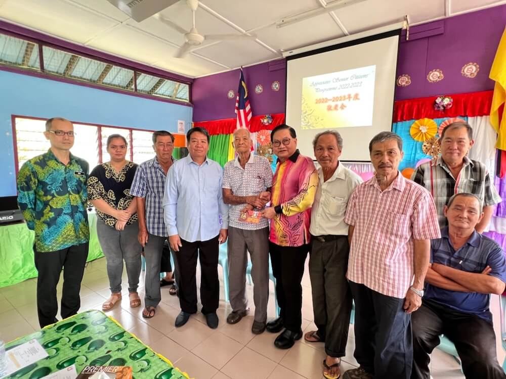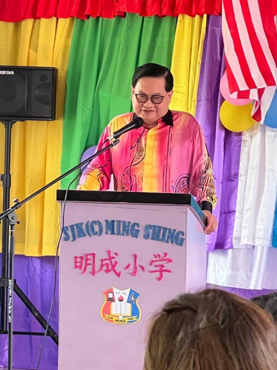 民丹莪顺溪城明成小学校友兼助学金及敬老会赞助人,斯木省华总会长拿督吴标生博士致辞: