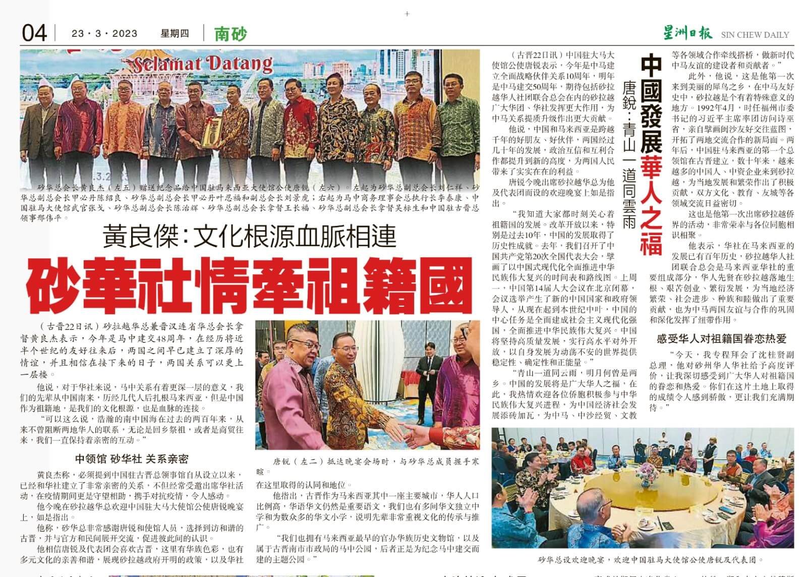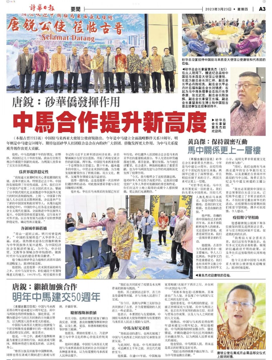 22/03/23 中國駐馬來西亞大使館公使唐銳及一行人莅临古晋歡迎晚宴