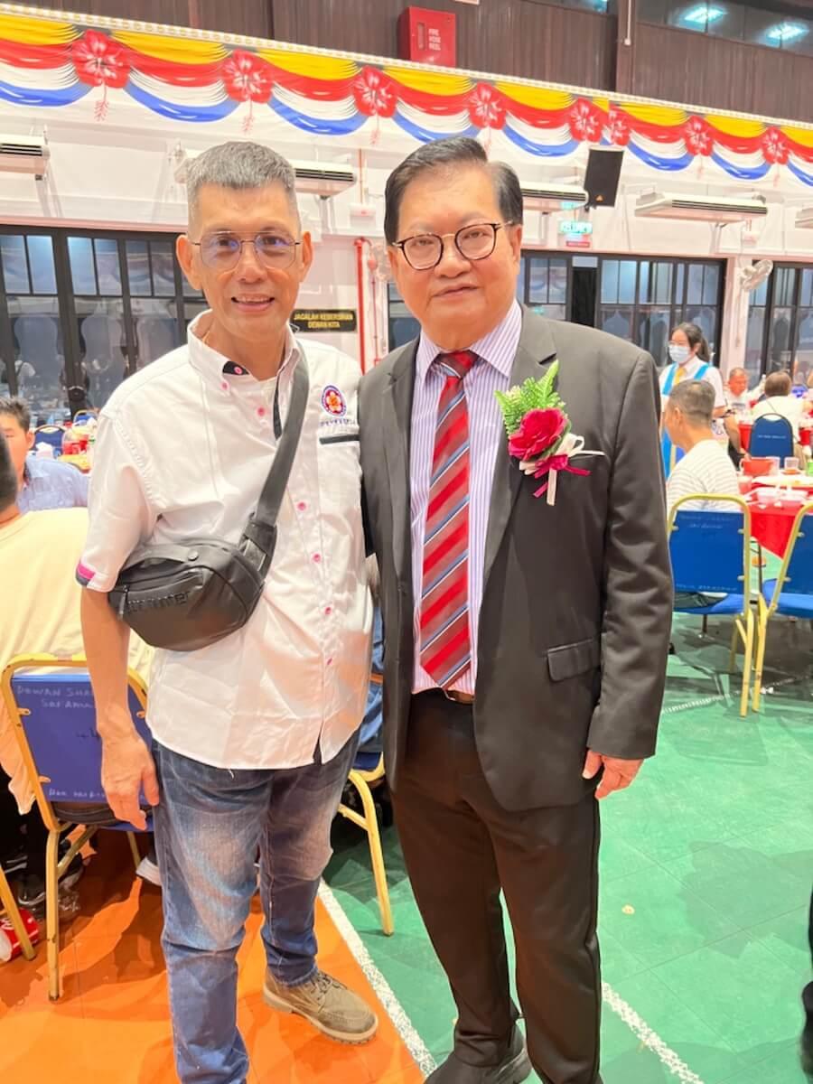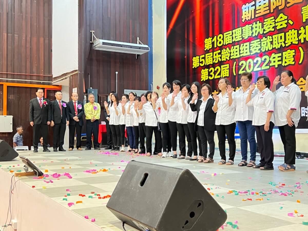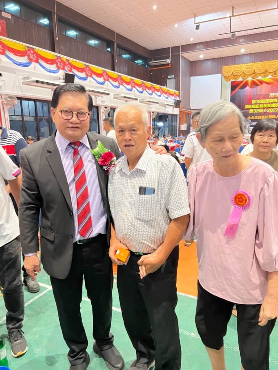 在這裡我謹代表斯木省華總熱烈的祝賀貴會今晚成功的主辦這項非常有意義的活動,同時也要祝賀我的老朋友張國斯眾望所歸,再次蟬聯貴會主席之職,同時也祝賀各位賢達不負眾望,當選為新屆的理事,青年團團委,婦女組組委及樂齡組組委,恭喜恭喜。