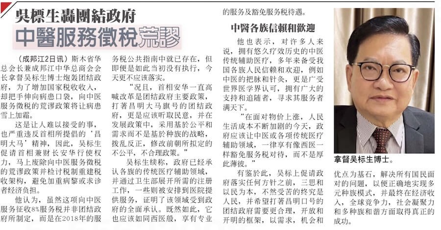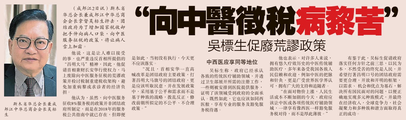 02/01/24 拿督吴标生:中医服务徵税荒谬