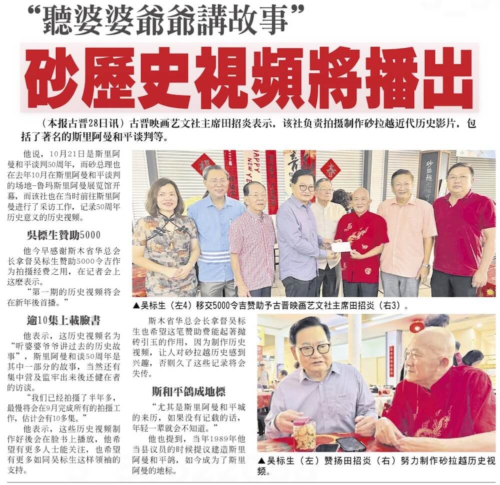 他說,10月21日是斯裡阿曼和平談判50週年,而砂總理也在去年10月在斯裡阿曼和平談判的場地-魯瑪斯裡阿曼展覽館開幕,而該社也在當時前往斯裡阿曼進行了採訪工作,記錄50週年歷史意義的歷史視頻。