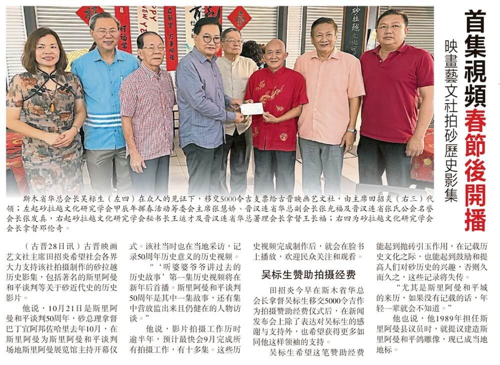古晋映画艺文社主席田招炎表示,该 社负责拍摄制作砂拉越近代历史影片,包括了著名的斯里 阿曼和平谈判等。