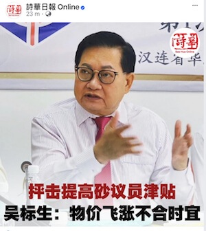 18/05/24 拿督吴标生:砂议员大增津贴非时宜