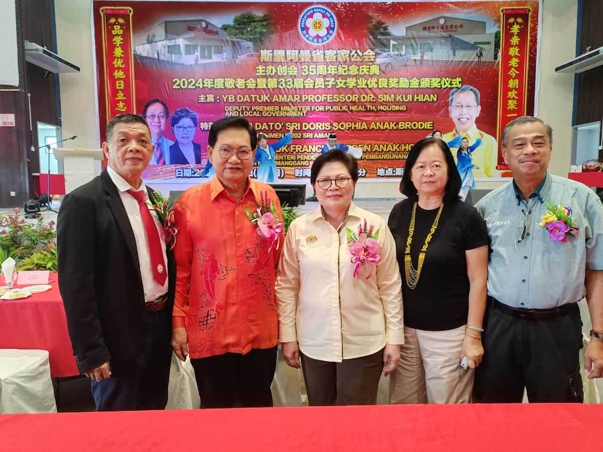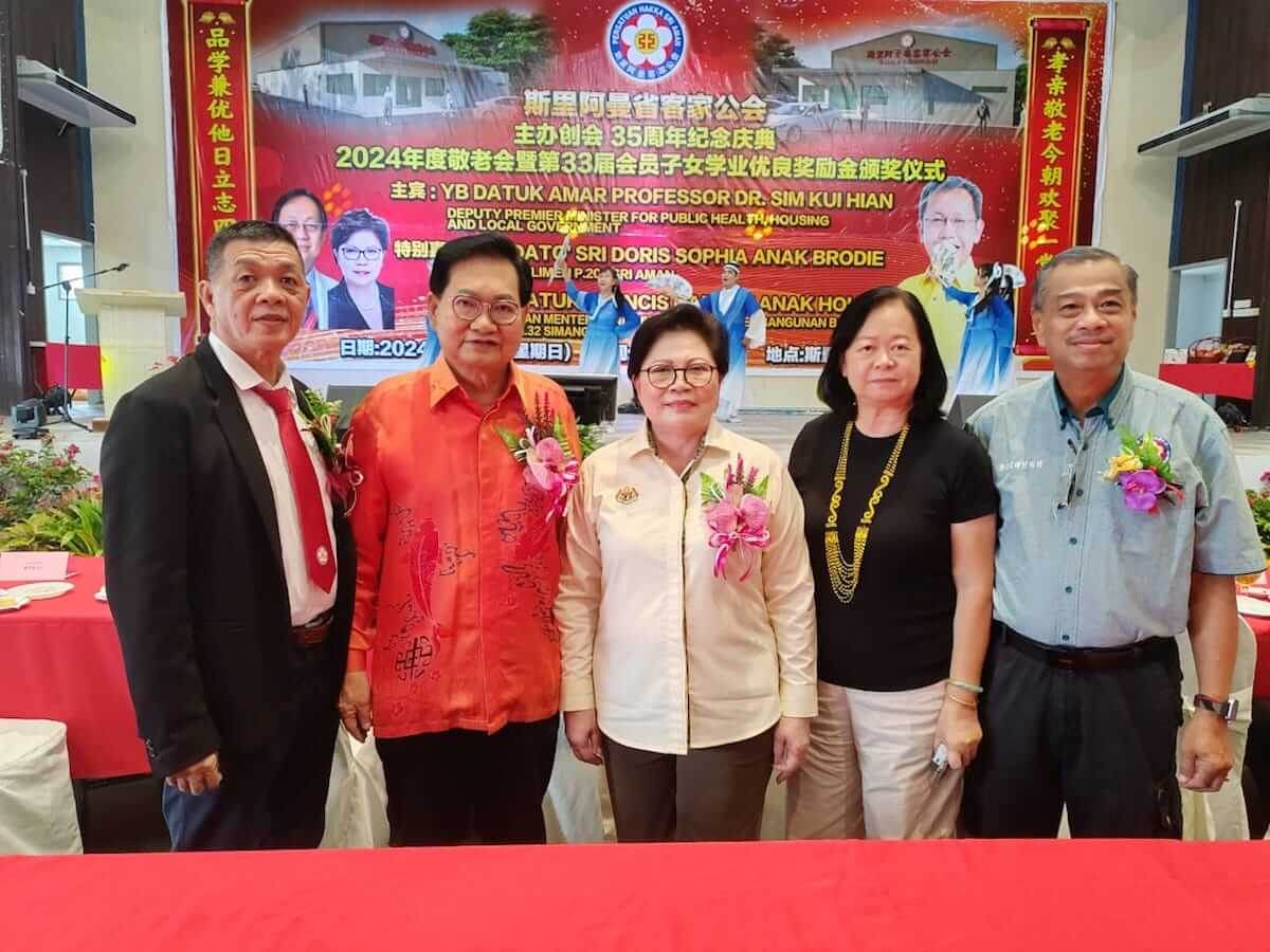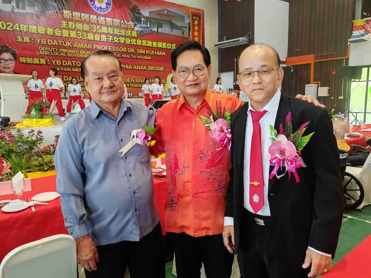 斯里阿曼省客家公会今早在斯里阿曼民事中心举办创会35年庆典午宴暨2024年度敬老会与颁发该会第33届会员子女教育奖励金,邀请砂副总理兼公共卫生、房屋及地方政府部长拿督阿玛沈桂贤为主宾。庆典特别嘉宾包括斯里阿曼区国会议员拿督斯里多丽丝,斯木省华总会长拿督吴标生博士以及来自全砂各地客联的代表们,场面盛况热闹。今年度奖励金赞助人为该会名誉顾问刘国锋,敬老会赞助人为该会名誉顾问赖汉锦。