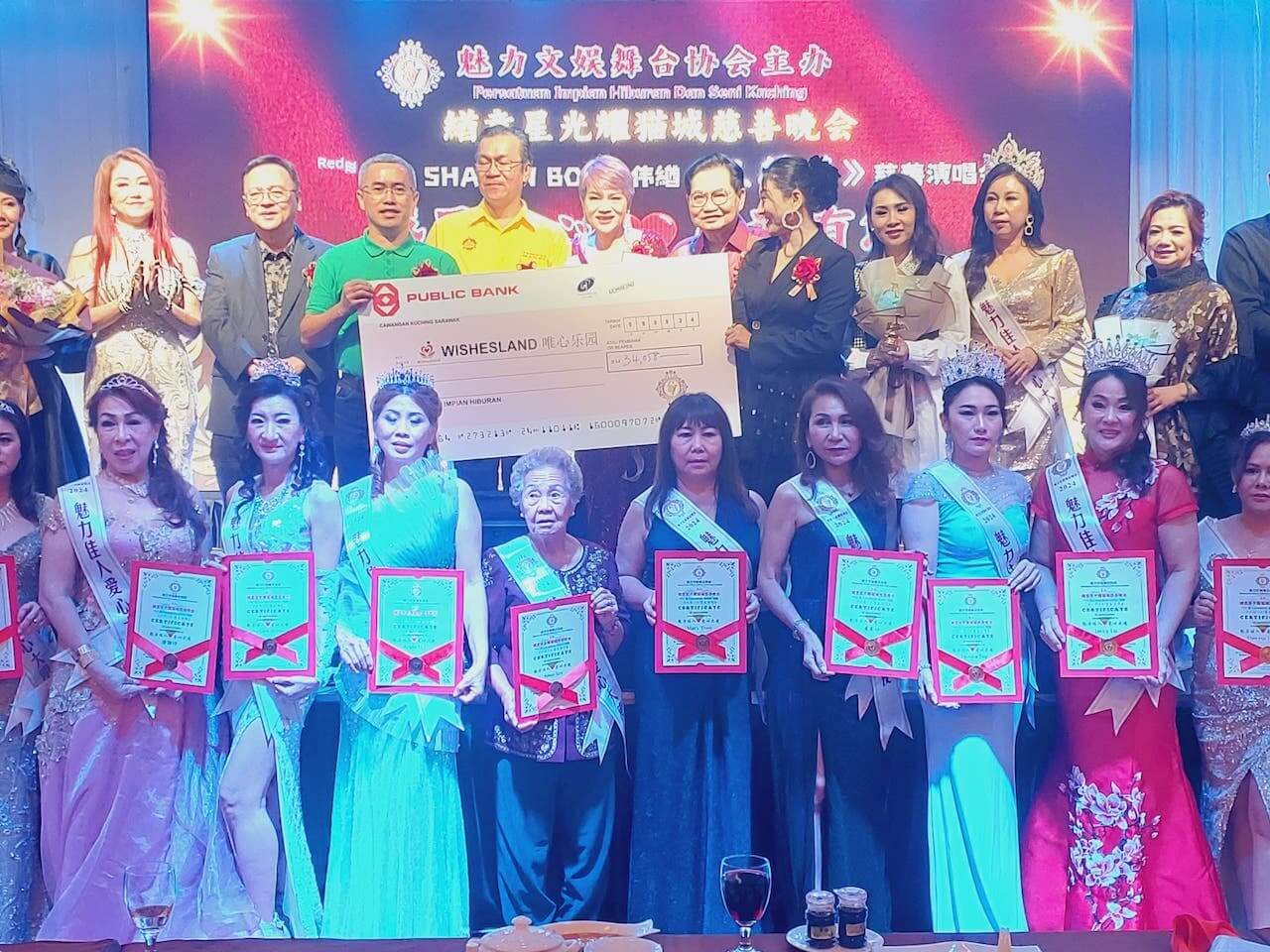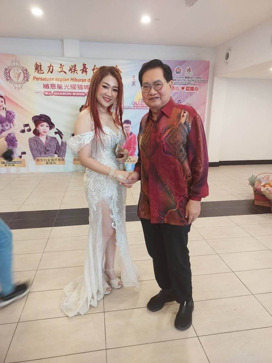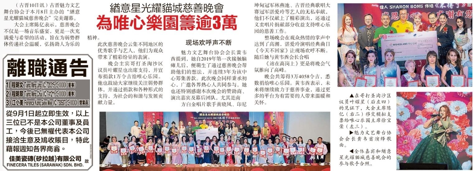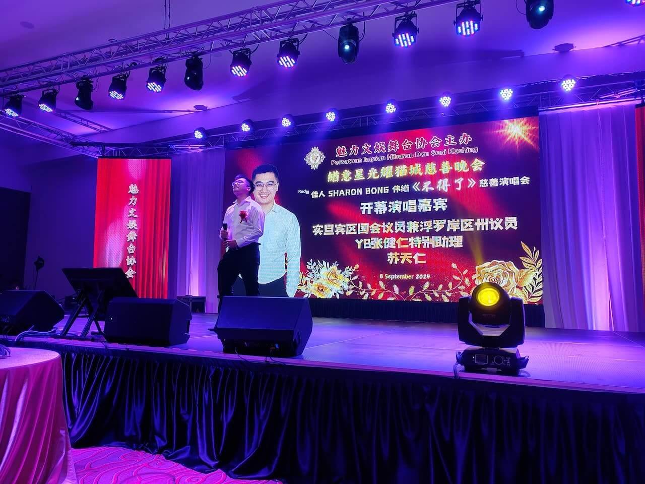 斯木省华总会长应邀参加魅力文娱舞台协会于古晋海天楼主办的緧意星光耀猫城慈善晚会,并捐献一千令吉作为晚会基金。