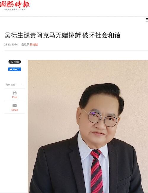 28/10/24 拿督吴标生谴责阿克马无端挑衅
