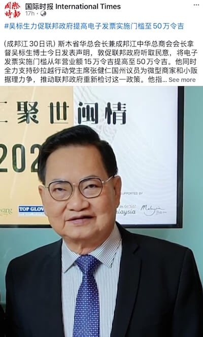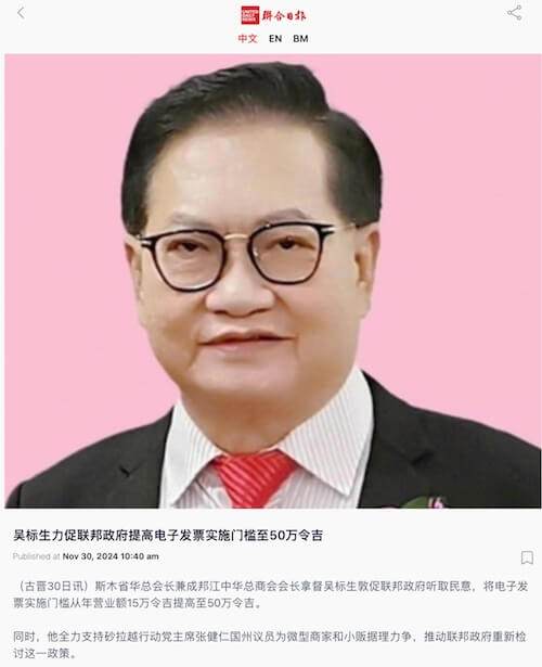 30/11/24 拿督吴标生力促联邦政府提高电子发票实施门槛至50万