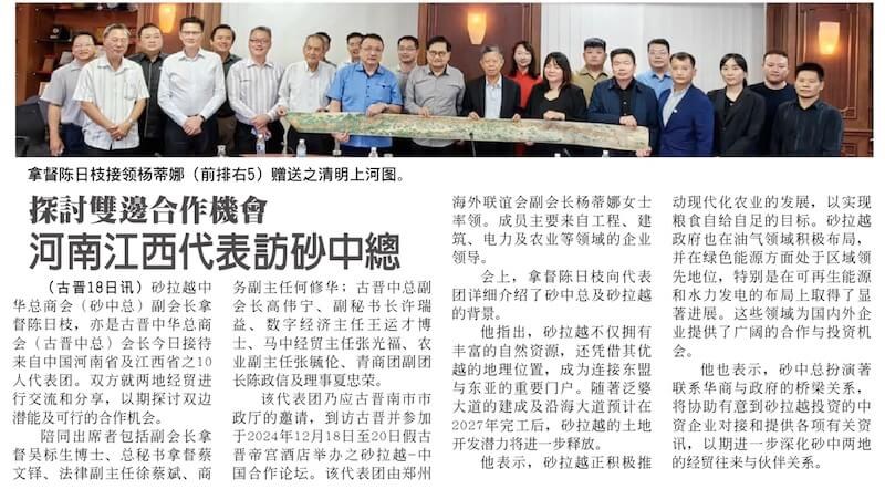 活动资讯 18/12/24 河南江西访砂中总 砂拉越中华总商会副会长拿督吴标生博士,也是成邦江中华总商会会长12月18日接待来自中国河南省及江西省之10人代表团。双方就两地经贸进行交流和分享,以期探讨双边潜能及可行的合作机会。